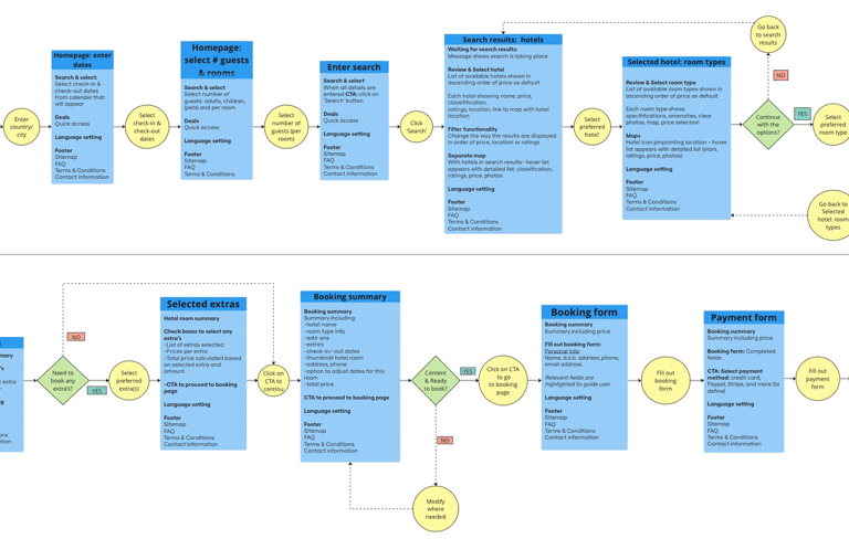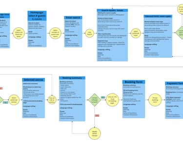 Flow diagram β I created a user flow diagram to define the happy path of the primary use case, visualising each step of the hotel booking journey to ensure a clear, intuitive experience.