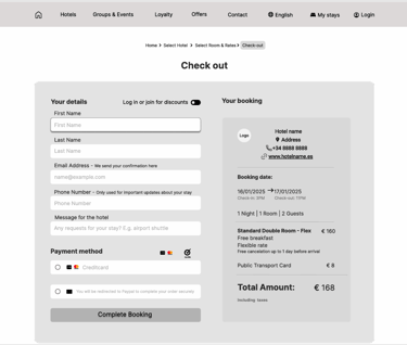 Hospitality – Hotel booking flow